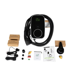 Borne JUPITER PLUS avec câble de recharge 7,5 mètres associé à un connecteur Type 2 + prise Type E sur le côté, dynamique et intelligente, RFID, OCPP 1.6, équilibrage de la charge (délestage) avec Tores de mesure inclus, gestion de l’énergie solaire, Application dédiée gratuite, connexion wifi inclus.